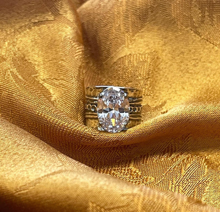 Quick Shop women's ring, fantastical, magical, shiny, silver, banded, ringed, oval stone size 5-10 $57.00 Quick Shop