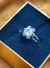 A cutesy silver ring with a petal-like frame around its gem, capable of adding a touch of fantasy and fun to your day!