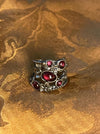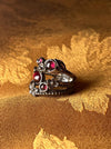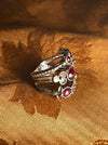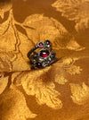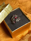 women's ring, mythical, magical, fantastical, flowers, red stones, silver