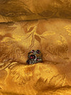 A silver ring containing five red stones surrounded by flowers brings to my mind the image of the Greek goddess Persephone, for her time in the underworld is spent with her husband Hades, the god of death who I associate with the colors red and black, and in the springtime she arises from the underworld to help her mother Demeter bring about spring.
