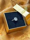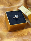 women's ring, round, clear gem, etched, boho, chic, magical, mystical, silver